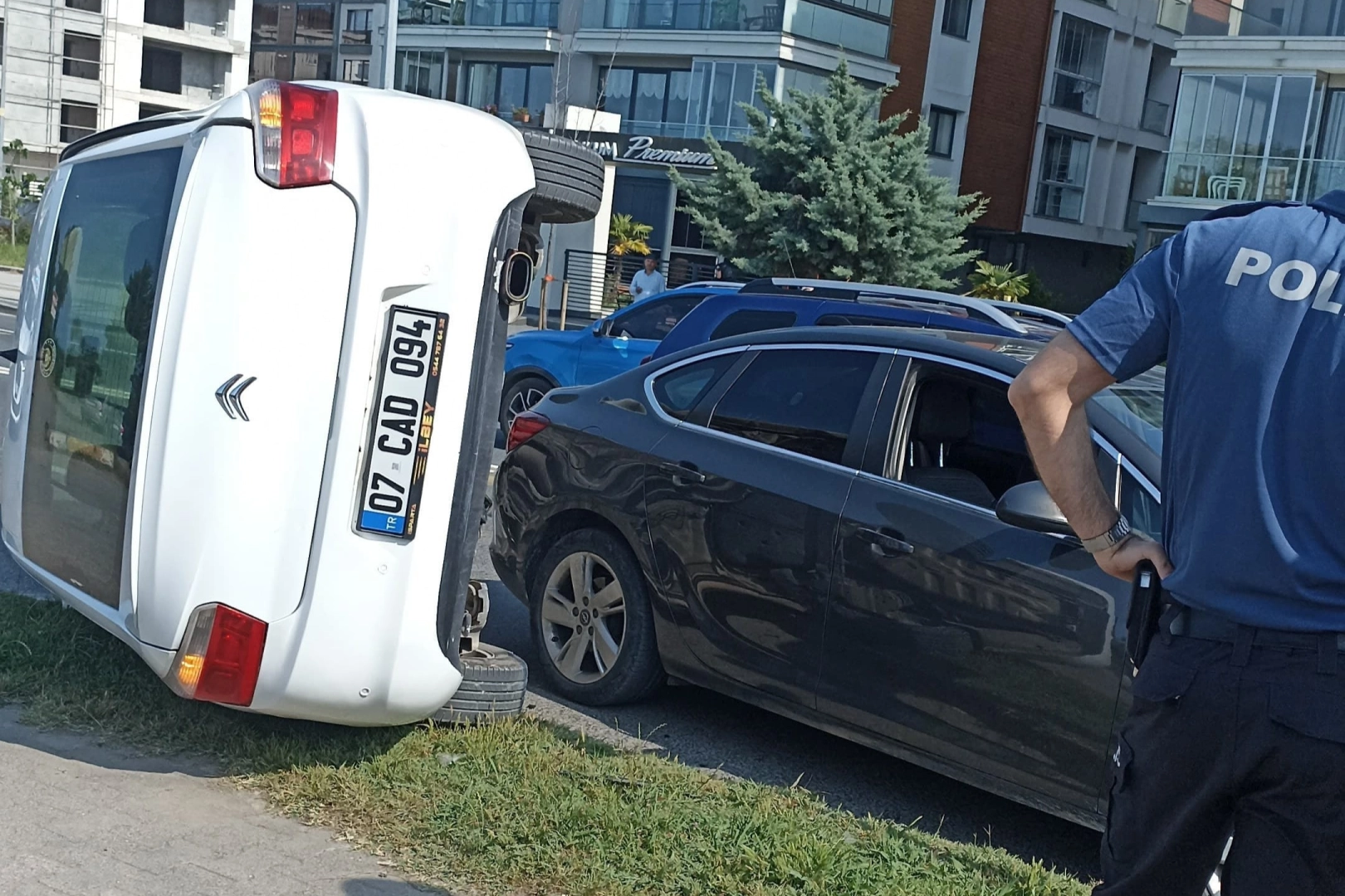 Sürücüsünün direksiyon hakimiyetini kaybettiği her 2 otomobil savruldu. Kazada M.S.A. idaresindeki 07 CAD 094 plakalı otomobil takla atarken, araç sürücüleri kazada yara almadı.