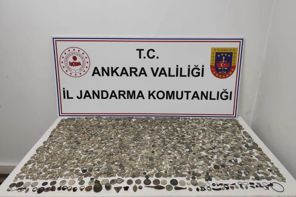 Ankara İl Jandarma Komutanlığı ekiplerince yapılan teknik ve fiziki çalışmalar neticesinde şüpheli olarak belirlenen bir araçta yapılan aramada, 4 bin 460 adet Bizans ve Roma dönemine ait Sikke ile eski dönemlere ait 55 adet metal obje olmak üzere toplam 4 bin 515 tarihi eser ele geçirildi. Olayla ilgili gözaltına alınan M.A. ve B.O. isimli şüpheliler hakkında soruşturma başlatıldı.