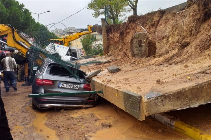 Kurtköy Üstün Caddesi'nde bir sitenin istinat duvarı, sabah saatlerinde etkisini artıran sağanak nedeniyle çöktü.