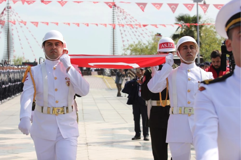 Kutlamalar, saat 07.45'te Atatürk Anıtı'nda başladı. Gençlik ve Spor İl Müdürlüğü’nün anıta çelenk sunumuyla başlayan tören, saygı duruşunda bulunulması ve İstiklal Marşı'nın okunması ile devam etti. Anıttaki törenin ardından Tütün İskelesi'ndeki tören alanına geçildi.