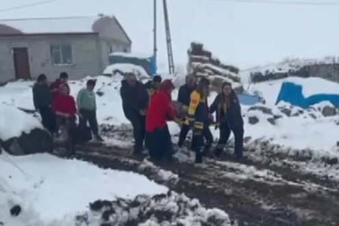 Kars'ta boynu kırılan 76 yaşındaki yaşlı kadın için ekipler seferber oldu. Karlı yolları aşan ekipler, yaşlı kadını hastaneye yetiştirdi.
