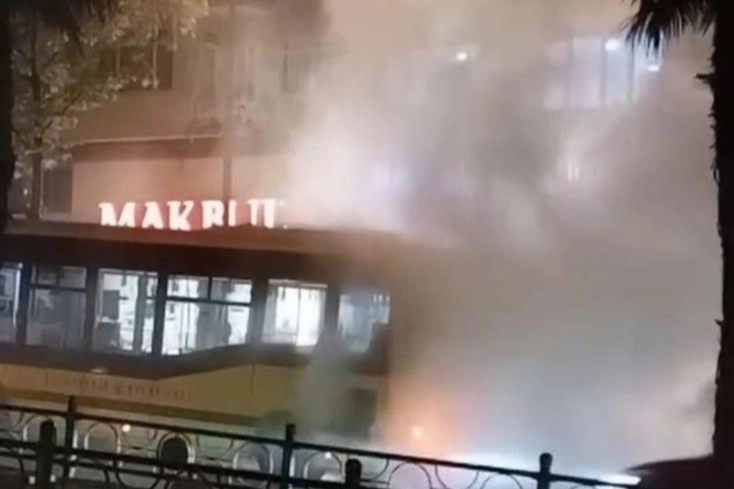 Bursa'da belediye otobüsü arıza yaptı, çevreyi duman sardı