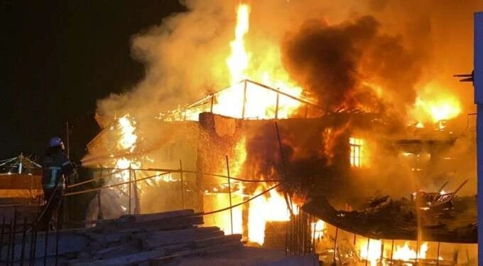 Alevler, 2 katlı ahşap binayı tamamen sararken, alevler adeta geceyi aydınlattı. Yangın sebebiyle zaman zaman çökme tehlikesi yaşandı.