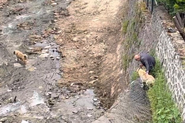 Duyarlı vatandaşlar, "Burada birkaç saattir hayvanlar mahsur kalmış. Biz de itfaiye ekiplerini arayıp yardım istedik. Sağolsunlar hemen geldiler. Köpeklerin sahibi de şans eseri buradan geçerken hayvanlarını görmüş. Kendisi dereye inip hayvanları kurtardı ama insan bu hayvanlara bir kimlik alır. Almasaydı barınağa gidecekti belki de" diye konuştular.