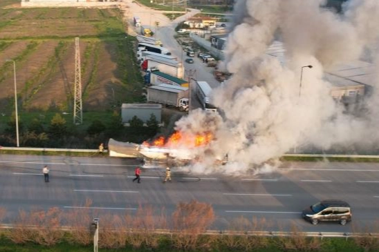 Yangın, merkez Nilüfer ilçesi İrfaniye Mahallesi İstanbul-İzmir Otoyol girişinde meydana geldi. Edinilen bilgiye göre, bir TIR'ın dorsesi henüz bilinmeyen bir sebeple devrildi. Devrilen dorse alev alırken sürücü dorseyi TIR'dan ayırarak durumu itfaiye ekiplerine bildirdi. Olay yerine gelen itfaiye ekipleri yangına yaklaşık yarım saat müdahale ederek kontrol altına aldı.
