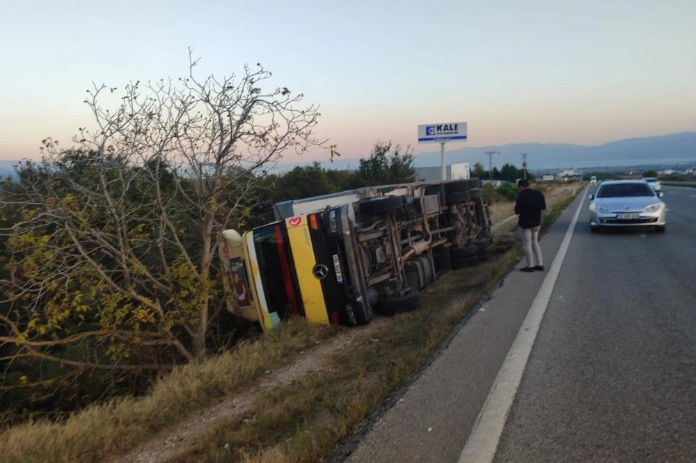 Kaza, akşam saatlerinde Orhangazi-Yalova karayolu Süpürgelik mevkiinde meydana geldi. Alınan bilgilere göre, Cengiz A. (43) idaresindeki 16 AYH 161 plakalı bir zincir markete ait nakliye kamyonu, Orhangazi’den Yalova istikametine halindeyken kontrolden çıkarak dere yatağı sınırında devrildi. Kamyon son anda dere yatağına yuvarlanmaktan kurtulurken, sürücü hafif yaralandı. İhbar üzerine olay yerine gelen sağlık ekipleri yaralı sürücüyü Yalova Devlet Hastanesine kaldırdı. Kaza yapan kamyon vinç yardımıyla bulunduğu yerden kaldırılırken, jandarma ekipleri kaza ile ilgili soruşturma başlattı.