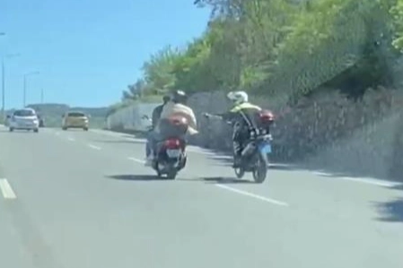 Mudanya-Bursa Yolu’nda ekiplerden kaçmaya çalışan motosiklet sürücüsü, trafiği birbirine kattı.