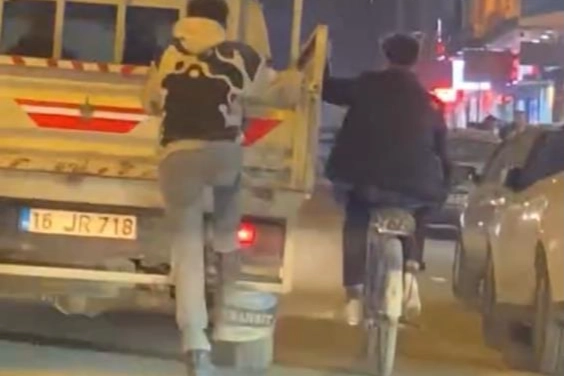 Olay, Yenice Mahallesi Nuri Doğrul Caddesi üzerinde meydana geldi. Edinilen bilgilere göre, patenli ve bisikletli iki genç, seyir halindeki bir kamyonetin arkasına tutunarak ilerlemeye başladı. Trafiği ve kendi can güvenliklerini hiçe sayan gençler, bir süre bu şekilde yolculuk etti. O anları gören bir vatandaş ise cep telefonu kamerasıyla tehlikeli yolculuğu kaydetti. Görüntülerde gençlerin zaman zaman dengesini kaybetme tehlikesi yaşadığı görülürken, çevredeki sürücüler de duruma tepki gösterdi.