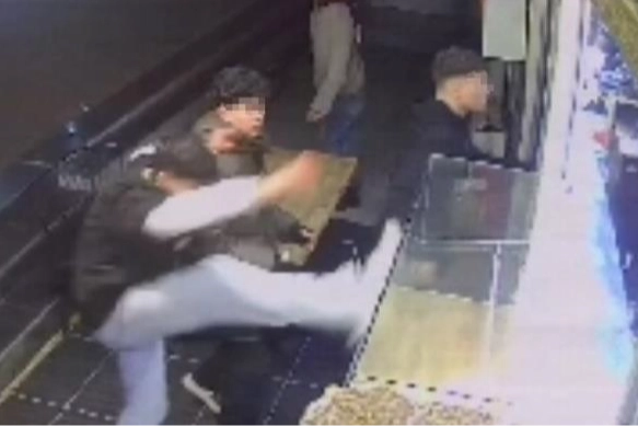 Tartışmanın kısa sürede büyümesiyle öfkeli taraflar bir anda birbirine vurmaya başladı. Kavgaya taraflarında girmesiyle sandalye ve masalar havada uçuşurken, saldırganların biri kavgayı bahane edip tezgahtaki ürünleri çaldı.