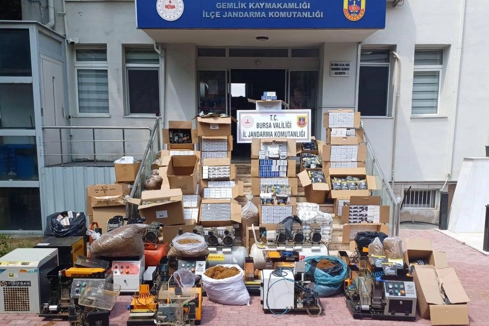 Bursa İl Jandarma Komutanlığı'nın kaçakçılıkla mücadelesi aralıksız devam ediyor. Gemlik İlçe Jandarma Komutanlığı, İstihbarat Şube Müdürlüğü ve Kaçakçılık ve Organize Suçlarla Mücadele Şube Müdürlüğü ekipleri tarafından kaçak sigara üretimi yapıldığı tespit edilen üç ayrı üretim tesisine eş zamanlı operasyon düzenlendi. Yapılan operasyonda 80 bin adet tütün basılı sigara, 301 bin 400 adet makaron, 173 kilogram kıyılmış tütün, 47 bin 400 adet boş sigara kutusu, 4 bin 800 adet sigara filtresi, 10 adet elektronik sigara basma makinesi, 4 adet kompresör ve 2 adet hava makinesi ele geçirildi. Yapılan operasyon sonucunda üretim yerlerinin V.A. (43), A.A. (43), E.O. (54) ve M.T. (52) isimli şahıslara ait olduğu tespit edildi. Şüpheli 4 kişi gözaltına alınarak haklarında adli işlem başlatıldı.