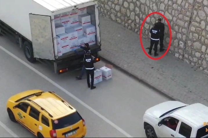 Bursa İl Emniyet Müdürlüğü Kaçakçılık ve Organize Suçlarla Mücadele Şube Müdürlüğü ekipleri, Bursa Cumhuriyet Başsavcılığı’nın koordinesinde tütün ve tütün mamullerini kaçakçılığı yapan şahıslara yönelik teknik ve fiziki takip başlattı. Savcılığın izninin ardından Bursa’da 9 ve İzmir’de 1 adrese eş zamanlı operasyon düzenledi. Yapılan operasyonda 4 şüpheli kıskıvrak gözaltına alınırken; aramalarda 33 milyon 340 adet boş makaron, 537 bin 200 adet dolu makaron, 18 bin 65 adet sökülmüş vaziyette TAPDK bandrolü, 11 bin 71 paket gümrük kaçağı sigara, 6 bin 525 paket kaçak sigara sarma kağıdı, 146 adet kaçak elektronik sigara, 26 paket nargile tütünü ve 5 paket kaçak pipo tününü ele geçirildi. Gözaltına alınan 4 şüpheliden Ş.S. adli kontrol şartıyla serbest bırakılırken A.S., F.S., K.S. tutuklanarak cezaevine gönderildi. Öte yandan, kasası kaçak makaron dolu kamyonun polis tarafından durdurulma anı havadan dron ile görüntülendi.