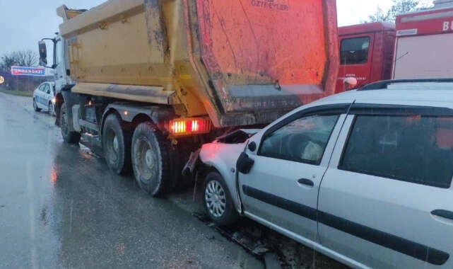 Orhangazi’de sabah saatlerinde meydana gelen trafik kazasında bir otomobil önünde seyir halindeki kamyona arkadan çarptı. Araç içinde sıkışan yaşlı sürücü ağır yaralandı.