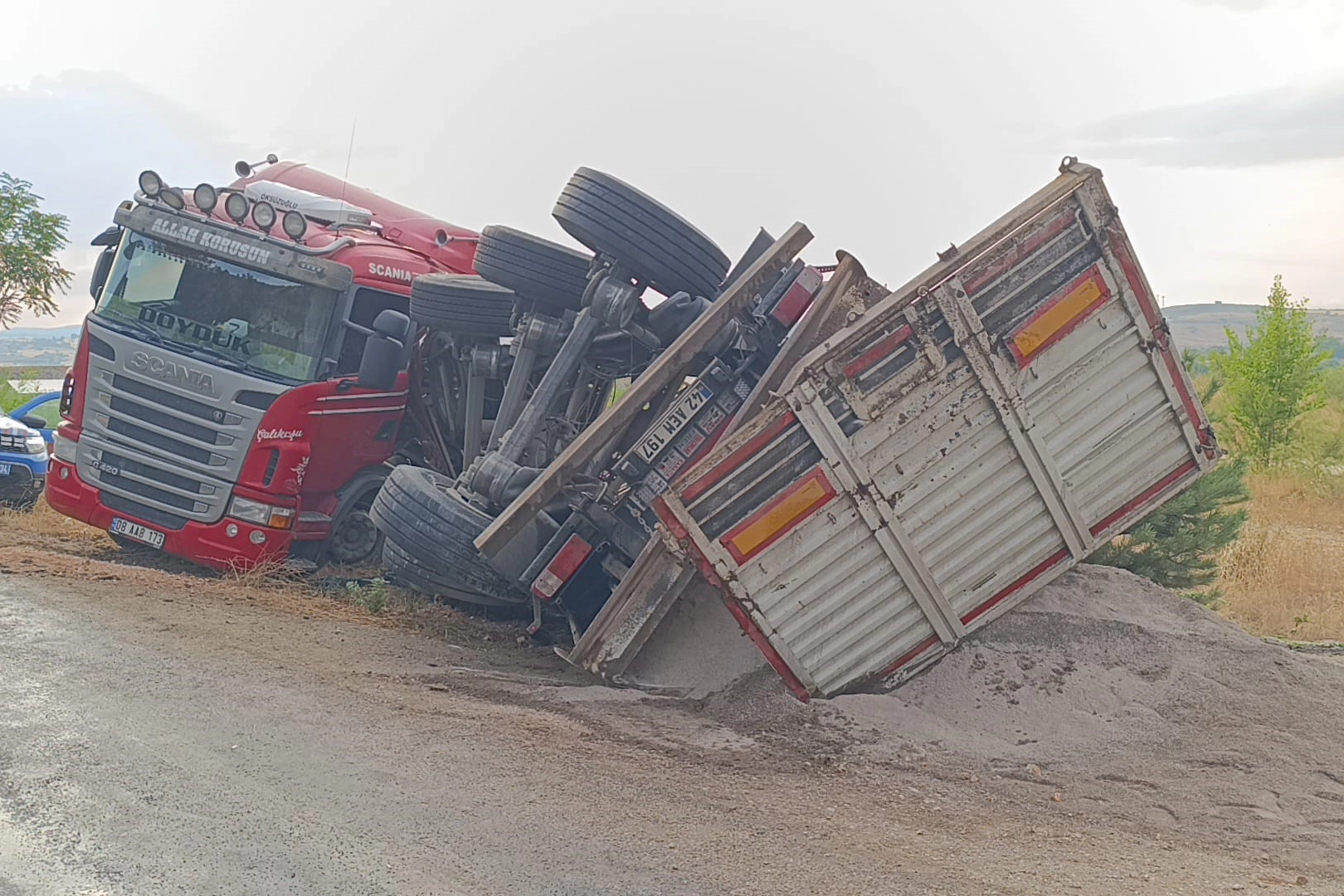 Kaza, saat 18.30 sıralarında İnegöl-Yenişehir yolu üzeri Boğazköy mahallesi mevkiinde meydana geldi. İnegöl'den Yenişehir'deki yüksek hızlı tren inşaatına kum taşıyan Alper A. (47) yönetimindeki 08 AAB 173 plakalı tır, İnegöl'ün Boğazköy Mahallesi mevkiinde yağış nedeniyle kayganlaşan yolda, kontrolden çıkarak devrildi. Kazada yaralanan sürücü, çevredeki vatandaşlar tarafından tırdan çıkarıldı. Olay yerine gelen sağlık ekiplerinin ilk müdahalesinin ardından yaralı sürücü, ambulansla İnegöl Devlet Hastanesi Acil Servisine kaldırılarak tedavi altına alındı.