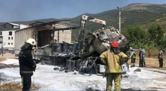 Bu arada, kaza yerinden uzun çabalarla kaldırılan ve çekici marifeti ile otoparka getirilen TIR, park edildiği sırada yanmaya başladı. İtfaiye ekiplerinin müdahalesi ile söndürülen TIR tamamen kullanılamaz hâle geldi. Polis ekipleri kazayla alâkalı tahkikat başlattı. Kaza sebebiyle kapanan Bursa-İstanbul yolu ise tekrar trafiğe açıldı.