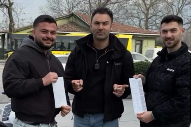 Bursa'da motosikletiyle trafiğe çıkan kişi, arkadaşıyla birlikte akaryakıt istasyonuna girdi. Bu esnada istasyonda olan polis memuru, gençlerin motosikletin plakasını kapatarak gezdiğini görünce yanına gitti. Polisi gören gençler, şaşkınlık içinde kimliklerini verdi. Polisin çağırdığı trafik ekiplerince sürücüye cezai işlem uygulandı. 2 bin 770 lira ceza kağıdını alan iki genç, kendilerini yakalayan polis memurunu aralarına alıp hatıra fotoğrafı çektirdi. İlginç diyalog kameraya anbean yansıdı.