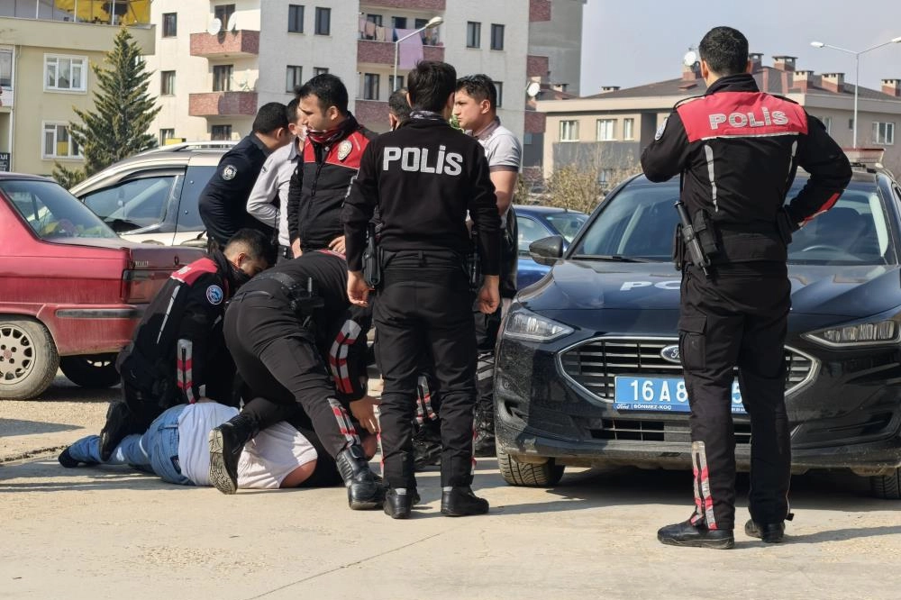 Olay, saat 13.00 sıralarında İnegöl Organize Sanayi Bölgesi 1. Cadde üzerinde meydana geldi. Araçta hareketsiz yatan bir kişi gören İnegöl Emniyet Müdürlüğü Trafik Büro Amirliği ekipleri, şahsı uyandırdılar. Ekipler şüphelendikleri şahıstan kimlik istedi. Ekiplere kimlik göstermeyen şahıs, hakaret etmeye başladı. Daha da öfkelenen alkollü olduğu öğrenilen şahıs, ekiplere saldırdı. Olay yerine çok sayıda polis ekibi sevk edildi. Etkisiz hale getirilen şüpheli Süleyman A. (48) sağlık kontrolü için hastaneye getirildi. Hastanede de alkolmetreyi üflemeyi reddeden şahıs, hastaneden çıkarılıp ekip otosuna bindirilmek istendiğinde yine ekiplere zorluk çıkarmaya başladı. Polislere küfürler eden şahıs, zorlukla yeniden etkisiz hale getirilip, ekip otosuyla karakola götürüldü. 3'ü trafik 3'ü yunus ekibi olmak üzere 6 polise mukavemette bulunma suçundan gözaltına alınan şahıs, sorgulamanın ardından adliyeye sevk edildi. Sürücünün 16 PD 280 plakalı otomobil, çekici yardımıyla otoparka çekildi.