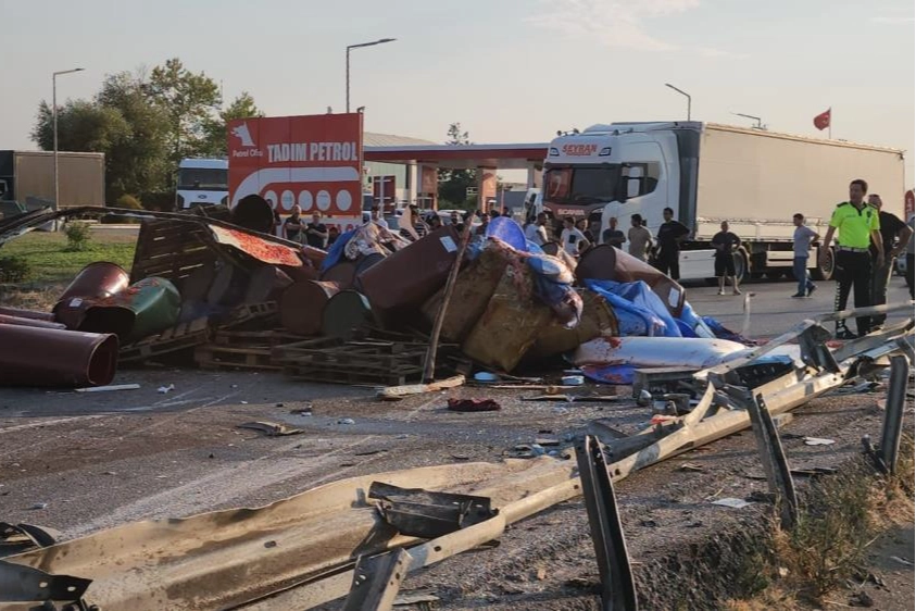 Edinilen bilgiye göre kaza, üzerinde , Mustafakemalpaşa ilçesi Güllüce Mahallesi mevkiinde meydana geldi. Bursa istikametinden Balıkesir yönüne doğru seyir halinde olan domates püresi yüklü kamyon, henüz bilinmeyen bir nedenle sürücüsünün direksiyon hakimiyetini kaybetmesi sonucu refüjü aşarak karşı şeride geçti. Karşı şeride geçen kamyon, yan yatarak durabildi. Kazada kamyon sürücüsü Y.E., aracın kabininde sıkıştı. İhbar üzerine olay yerine gelen itfaiye ekipleri, yaklaşık 50 dakikalık bir çalışmanın ardından yaralı sürücüyü sıkıştığı yerden kurtardı. Sağlık ekiplerinin kaza yerinde yaptığı ilk müdahalenin ardından Y.E., ağır yaralı olarak Mustafakemalpaşa Devlet Hastanesi'ne kaldırıldı. Kaza nedeniyle Balıkesir-Bursa istikametindeki trafik bir süre tek şeritten kontrollü olarak sağlandı. Kamyonun vinç yardımıyla kaldırılması sırasında ise yol tamamen trafiğe kapatıldı ve uzun araç kuyrukları oluştu. Kamyonun geçtiği karşı şeritte o esnada başka bir aracın bulunmaması ise facianın önüne geçti. Trafik ekipleri bölgede gerekli güvenlik önlemlerini alırken, kamyonun ve dorsesinin kaldırılmasının ardından yola saçılan domates püreleri ve bidonlar da temizlendi. Yapılan temizlik çalışmalarının tamamlanmasının ardından yol yeniden trafiğe açıldı. Kazayla ilgili inceleme başlatıldı.