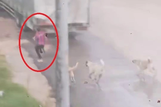 Bursa'nın İnegöl ilçesinde başıboş köpek sürüsü çocuğa saldırdı. Koşarak köpeklerden kaçan çocuğun korku dolu anları amatör kameraya yansıdı.