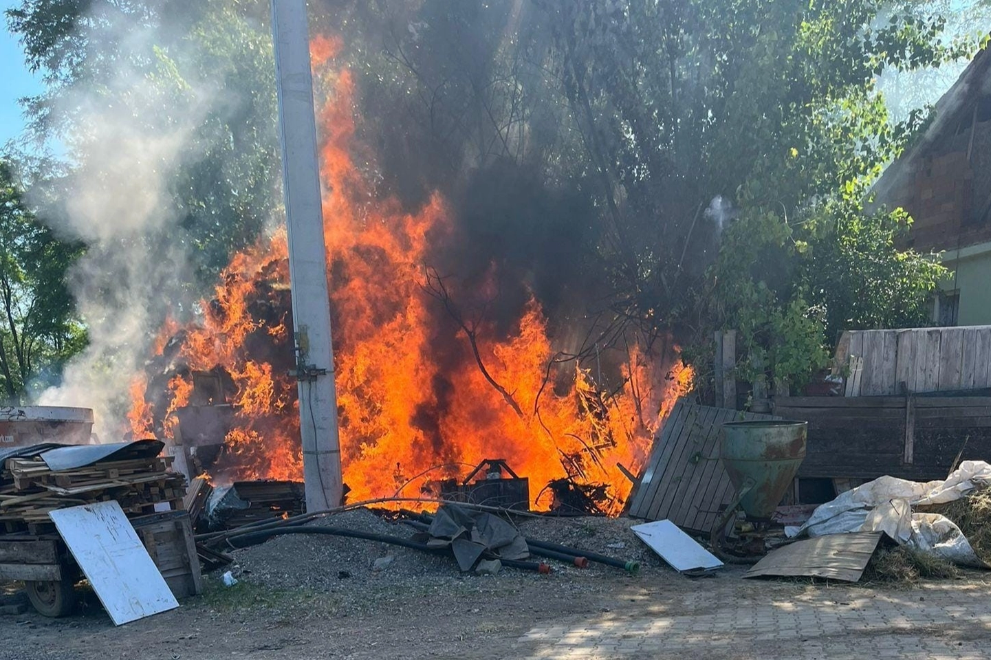 Yangın yarım saat süren çalışma sonucu söndürüldü. Yangın sonucu bine yakın saman balyası, su motoru, motosiklet hasar gördü.