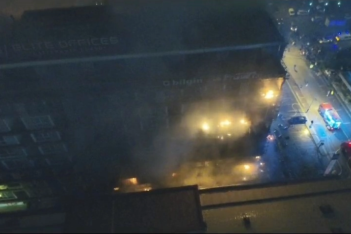 Altınşehir Mahallesi Ahmet Taner Kışlalı Bulvarında bulunan 10 katlı iş merkezinde meydana gelen yangına 33 araç 130 personel ile müdahale eden itfaiye ekipleri binayı termal dronlar ile havadan da kontrol etti.