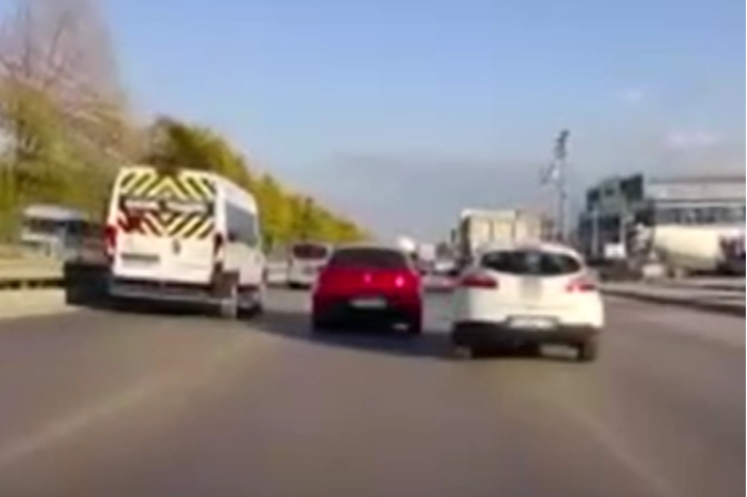 Olay, Bursa'nın Nilüfer ilçesi Görükle Kavşağı mevkii İzmir Yolu üzerinde meyana geldi. Otomobil sürücüsü makas atarak yol değiştirdiği sırada, kazayı kıl payı atlattı. Sürücü, yaşanan bu tehlikeli durumu fark etmeyerek yoluna devam ederken, o anlar araç kamerasıyla kayda alındı. Polis makas atan sürücüyü yakalamak için çalışma başlattı.