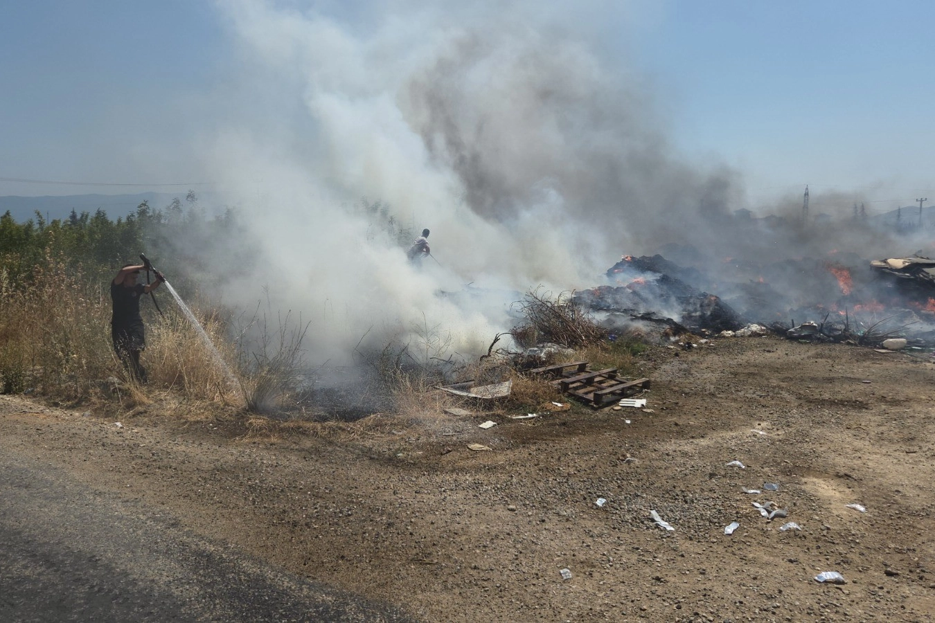 Bursa'nın Orhangazi ilçesinde molozların döküldüğü alanda başlayıp çalılık alana sıçrayan yangın büyümeden kontrol altına alındı.