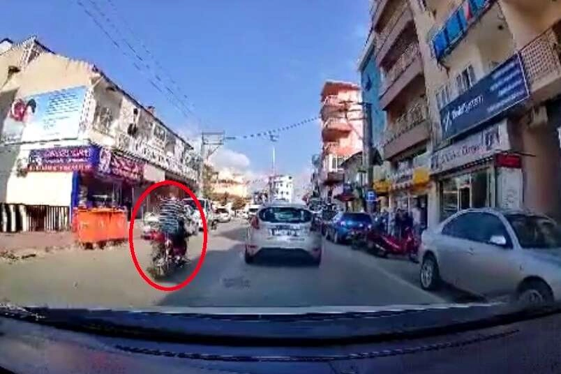 Kaza sonrası yere düşen sürücü hafif yaralanırken yardımına çevredekiler koştu. Sürücünün kendisini iyi hissetmesinin ardından tekrar motosikletine binerek devam etti.