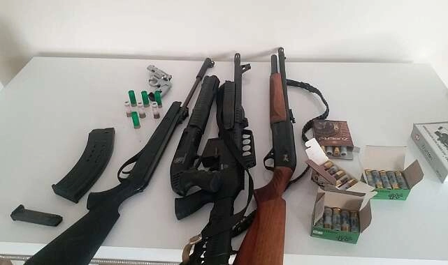 Şüphelilerin ev ve iş yerleri ile araçlarında yapılan aramalarda, 7 ruhsatsız tabanca, 2 kurusıkı tabanca, 6 ruhsatsız tüfek, 56 av tüfeği fişeği, 131 mermi ele geçirildi. Şüphelilerin emniyetteki işlemleri sürerken, diğer 4 şüphelinin yakalanması için ise çalışmanın sürdüğü bildirildi.