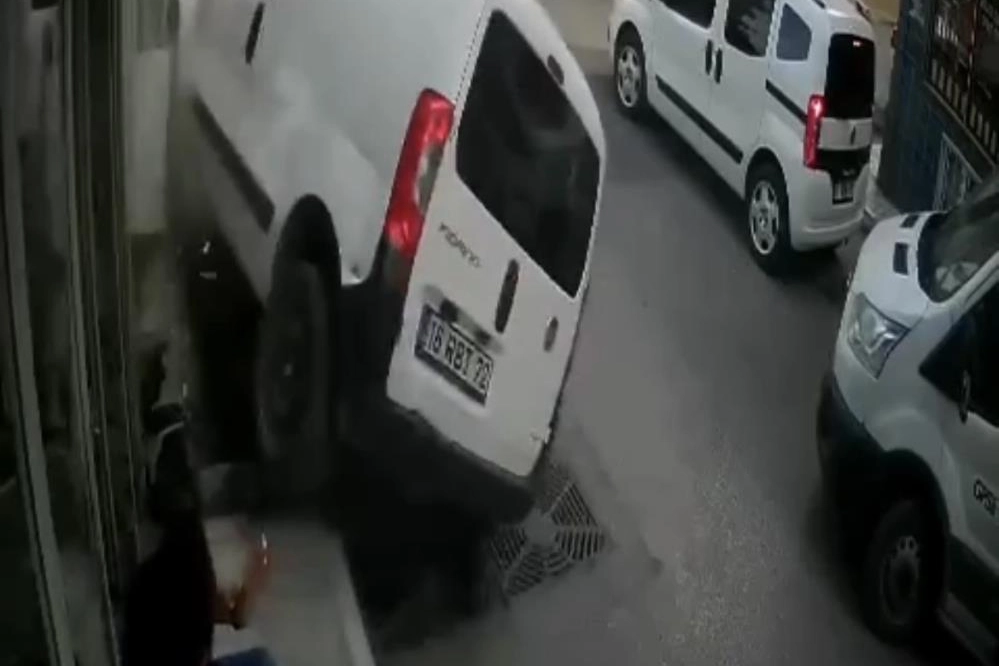 Olay, merkez Osmangazi ilçesinde meydana geldi. Park halinde bulunan servis minibüsü, sürücüsü tarafından olduğu yerden çıkarılırken, o esnada cadde üzerinde hızla seyreden hafif ticari araç sürücüsü minibüse çarpmamak için manevra yaptı. Bir anda kıraathanede çay içenlerin üzerine doğru ilerleyen hafif ticari araç; sürücünün son anda yaptığı refleks ile elektrik trafosuna çarptı. Yürekleri ağza getiren kaza kameraya anbean yansıdı.