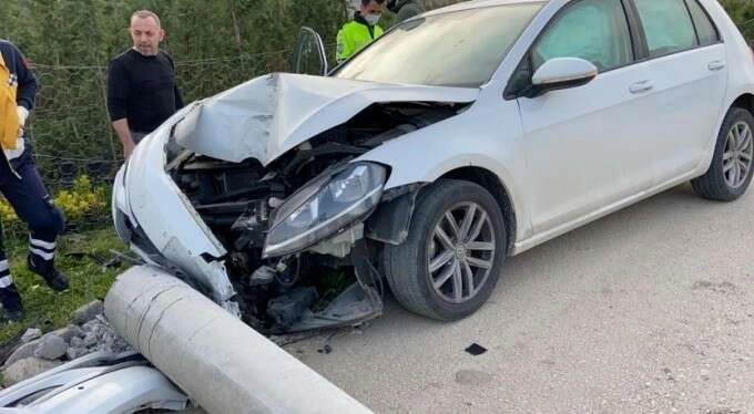 Savrulan araç yol kenarındaki enerji nakil hattı beton diğerine çarptı. Çarpmanın etkisiyle beton direk yol üzerine devrilerek ulaşıma kapattı.