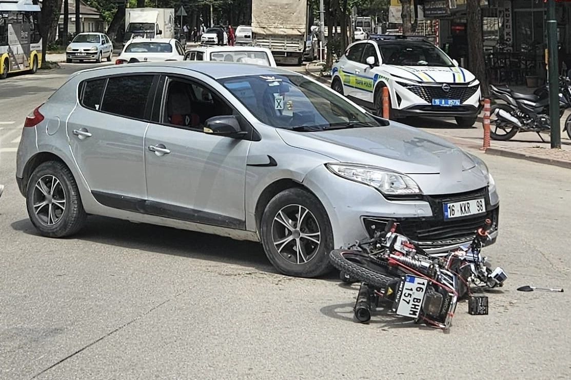 Kaza, saat 13.00 sıralarında Hamidiye Mahallesi Park Caddesi üzerinde meydana geldi. Ömer P. (17) yönetimindeki 16 BHM 157 plakalı motosiklet, seyir halindeyken karşı yönden sokağa dönüş yapan Abdülcebbar E. (26) yönetimindeki 16 KKR 98 plakalı otomobille çarpıştı. Çarpışmanın etkisiyle devrilen motosikletten düşen sürücü yaralandı. Yaralı, kaza yerine sevk edilen ambulansla İnegöl Devlet Hastanesine kaldırıldı. Polis, kazayla ilgili inceleme başlattı.