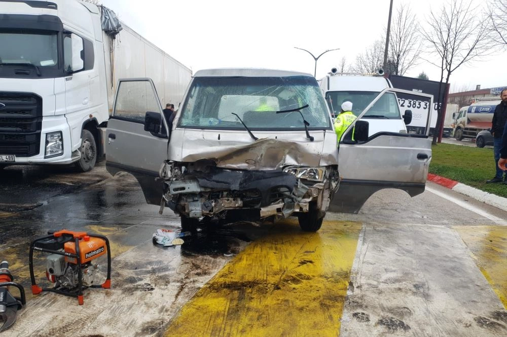 Kaza, saat 12.00 sıralarında Süleymaniye Mahallesi Havaalanı Caddesi'nde meydana geldi. Emre A. (23) yönetimindeki 16 ZH 453 plakalı minibüs, kontrolden çıkarak yol kenarında park halindeki 10 AKL 489 plakalı TIR'a yandan çarptı. Kazada minibüste sıkışan sürücü ile sürücünün ikizi Muhammed A. (23) ve yolcu Sedat Ö. (18) yaralandı. Kaza yerine 112 sağlık, polis ve itfaiye ekipleri sevk edildi. Ekiplerce araçtan çıkarılan sürücü ve 2 yolcu ambulansla İnegöl Devlet Hastanesine kaldırıldı. Polis kazayla ilgili inceleme başlattı.