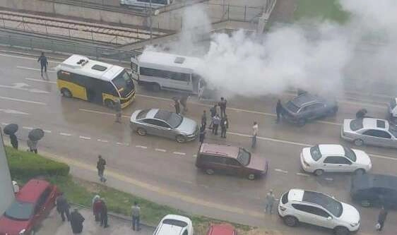 Alevler kısa sürede servis minibüsünü sararken yoldan geçen diğer sürücüler yangın tüpü ile müdahale ederek yangını büyümeden söndürdü. İhbar üzerine olay yerine gelen itfaiye ekipleri ise soğutma çalışması yaptı.