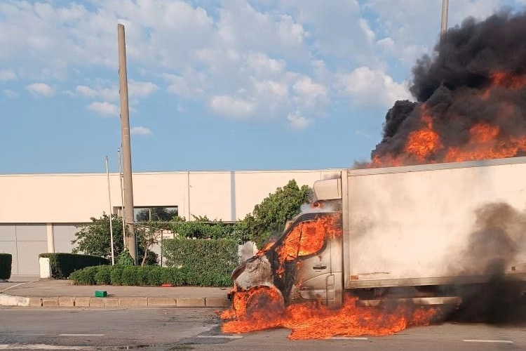 Yangının çıkış nedeni araştırılırken, alev alev yanan kamyonet kameraya saniye saniye yansıdı.
