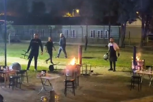 Dumandan ve kokudan rahatsız olan spor yapmaya gelen vatandaşların şikayeti üzerine olay yerine gelen Bursa Büyükşehir Belediyesi Zabıta ekipleri şahıslardan masa ve sandalyeleri toplayıp satışa son vermelerini istedi. Masaları toplatmayan şahıslar içlerinde çocuk ve kadın müşterilerin de yemek yediği sırada sandalyeleri kapıp zabıta ve polis ekiplerine fırlatmaya başladı. Başına sandalye isabet eden bir kişi kanlar içerisinde yere yığılınca olay yerine ambulans çağrıldı. Ellerinde bıçak olan şahıslar uzun süre polise ve zabıta ekiplerine sandalye fırlattı. Zabıta ve polisin biber gazı kullanmak zorunda kaldığı olay, meydan savaşlarını aratmazken takviye kuvvetin gelmesiyle birlikte şahıslar etkisiz hale getirilip gözaltına alındı.