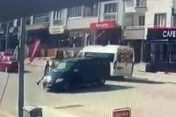 Park halindeki ve seyir halindeki araçlarla kazayı kıl payı atlatan minibüs park halindeki yerine tekrar gelirken, o ilginç anlarda sürücü ise canı pahasına mücadele verdi. Herkesi şaşkına uğratan o görüntü bir iş yerine ait güvenlik kamerasına yansıdı.