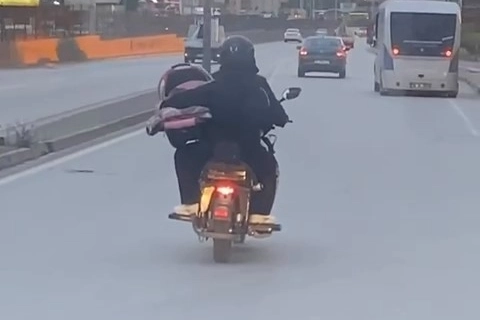 Olay, merkez Yıldırım ilçesi Hacivat Mahallesi'nde meydana geldi. Edinilen bilgiye göre, seyir halinde olan plakasız motosiklet sürücüsü eşi ve bebeğini yanına alarak ilerledi. Eşinin taşıdığı bebeği pusette götüren sürücü, işlek caddeye aldırış etmeden ilerledi. O anlar bir vatandaşın cep telefonu kamerasıyla görüntülendi.