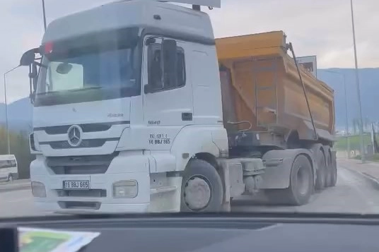 Yol ayrımından girmek için hareket eden otomobil ise, karşısında gördüğü kamyonu görünce neye uğradığını şaşırdı. Ters yönden gelen 16 BBJ 665 plakalı kamyon, herkesin canını hiçe sayması, 10 dakika veya 10 kilometre kaybetmek istememek için 'pes' dedirten hareketi, saniye saniye cep telefonu kamerasına yansıdı.