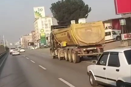 Sürücüsü henüz öğrenilemeyen kamyon, bir anda makas atmaya başladı.