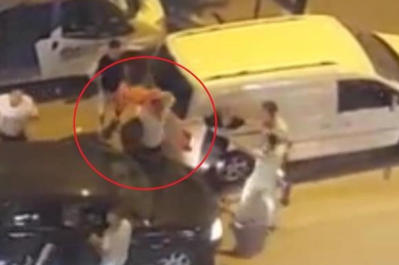 Merkez Osmangazi ilçesi Atatürk Caddesi'nde trafikte tartışma yaşayan iki grup arasında kavga çıktı. Kısa sürede büyüyen kavgada taraflar birbirine yumruk atıp duba savurdu. Ortalığı adeta boks ringine çeviren kalabalığı polis ekibi güçlükle ayırdı. O anlar kameraya anbean yansıdı.