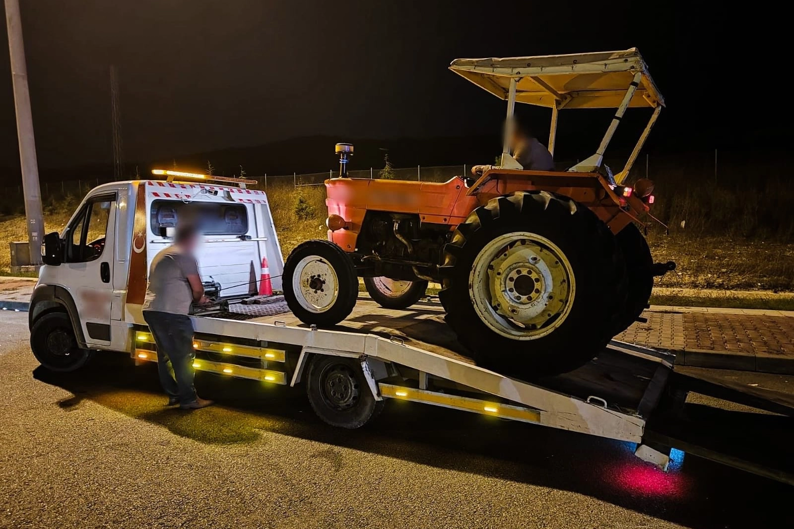 Otoyolda seyri yasak olan traktör, çekici vasıtasıyla bulunduğu yerden kaldırılarak otoparka çekildi ve trafikten men edildi.
