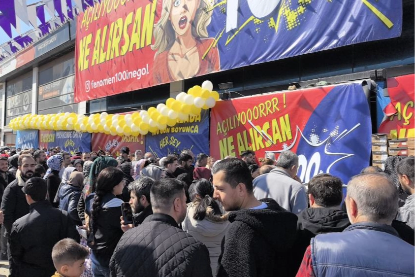 Bursa'nın İnegöl ilçesinde her şeyin 100 TL'ye satıldığı indirim mağazası açıldı. Açılan mağazada vatandaşlar ürünleri alabilmek için Alanyurt yolundaki iş yerinin önünde saatlerce beklediler. Yüzlerce vatandaş, kapıların açılması ile birlikte birbirlerini ittirerek içeri girmeye çalıştılar. Kapıların açılmasıyla birlikte izdiham yaşanırken vatandaşlar adeta birbirlerini ezdi.