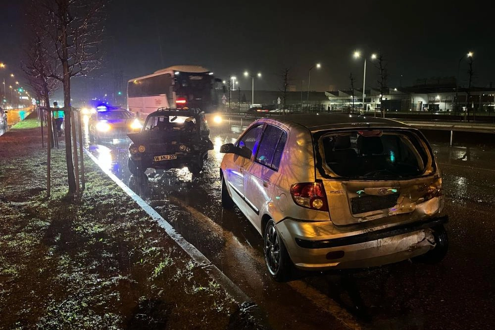 Kaza, merkez Osmangazi ilçesi İstanbul Yolu Caddesi Terminal mevkiinde meydana geldi. Edinilen bilgiye göre, Emre C. idaresindeki 16 AUZ 64 plakalı otomobil, kırmızı ışıkta durdu. Yoğun yağış sebebiyle kayganlaşan yolda duramayan Tuncay Y. idaresindeki 16 ANJ 207 plakalı otomobil, kırmızı ışıkta bekleyen Emre C. yönetimindeki otomobile çarptı. Çarpışmanın etkisiyle 16 AUZ 207 plakalı otomobilin sürücüsü Emre C. ile yolcu konumunda bulunan Hamiye C. ve Ahmet Resul K. ile, 16 ANJ 207 plakalı otomobilin sürücüsü Tuncay Y. ve 10 yaşındaki Bekir Y. yaralandı. İhbar üzerine olay yerine polis ve sağlık ekibi sevk edildi. Yaralılar, olay yerinde yapılan ilk müdahalelerinin ardından Çekirge Devlet Hastanesi'ne kaldırıldı.