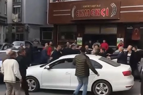 Sürücülerin kavgasına mahalle sakinleri de katılınca ortalık savaş alanına döndü. O anlar saniye saniye amatör kameraya yansıdı.