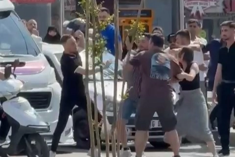 Yaşanan kavga anı ise bir vatandaşın cep telefonu kamerasına saniye saniye yansıdı.