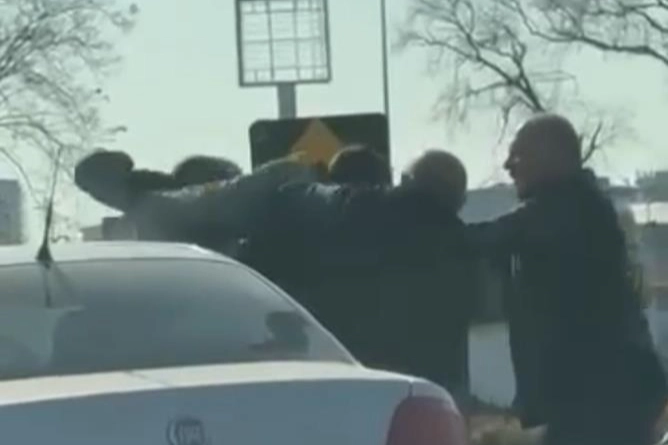 Olay merkez Osmangazi ilçesi İzmir Yolu caddesi Acemler mevkiinde meydana geldi. İddiaya göre, yoğun trafikte ilerlemeye çalışan iki sürücü yol verme meselesi nedeniyle sözlü tartışmaya başladı. Kısa sürede büyüyen tartışma kavga dönünce, öfkeli taraflar araçlarından inip bir birlerine tekme tokat vurmaya başladı. Öfkeli tarafların caddeyi ringe çevirdiği anlar kameraya yansırken, tarafları çevredekiler ayırdı.