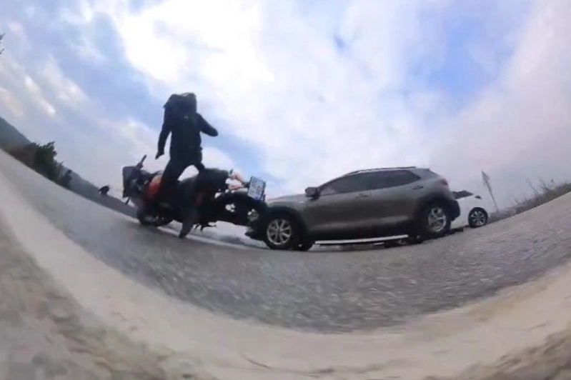 Kaza anı ise motosikletin aksiyon kamerasına saniye saniye yansıdı.