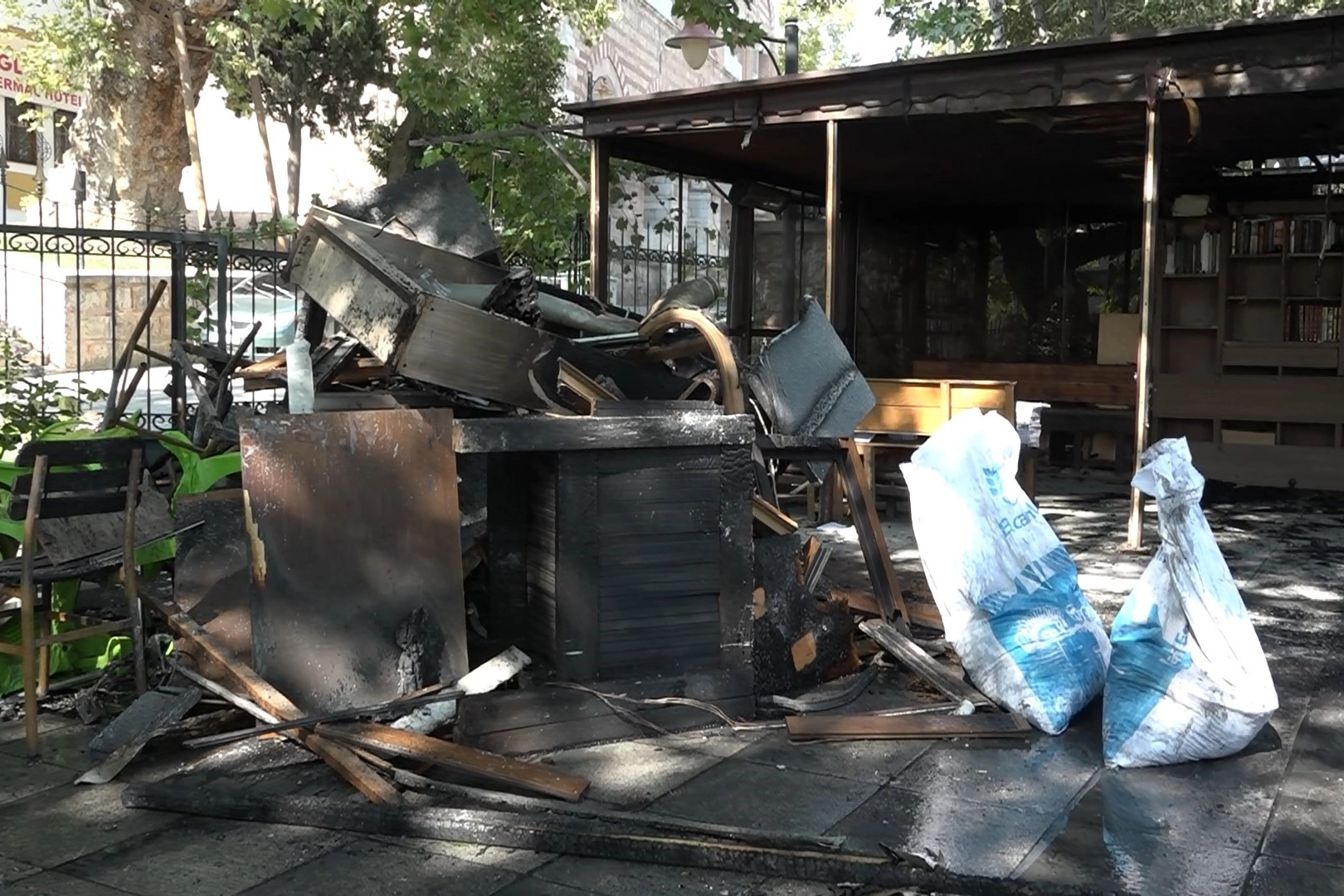 Ahşap yapıdaki alevler söndürülürken, Bursalıların simge mekanlarından tarihi çay bahçesi kullanılamaz hale geldi. Hatıraların da yok olup gittiği çay bahçesine gelen çalışanlar, yanan kitapları ve malzemeleri çuval çuval temizledi.