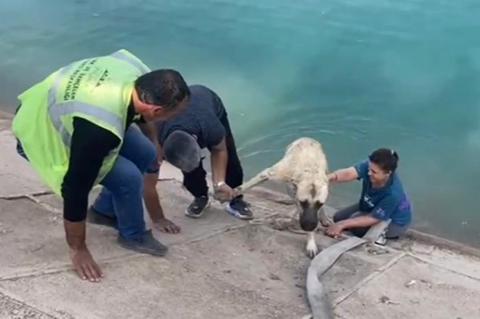 Belediyenin sulama tankerinin oradan geçmesinin kendileri için büyük bir şans olduğunu aktaran Erdinç Dilaver'de kanalın kenarı yamaç ve kaygan olduğu için eşimin de gücü kalmadı. Hortum uzatıp belediye ekipleriyle birlikte hem eşimi hem de köpeği kurtardık" şeklinde konuştu.
