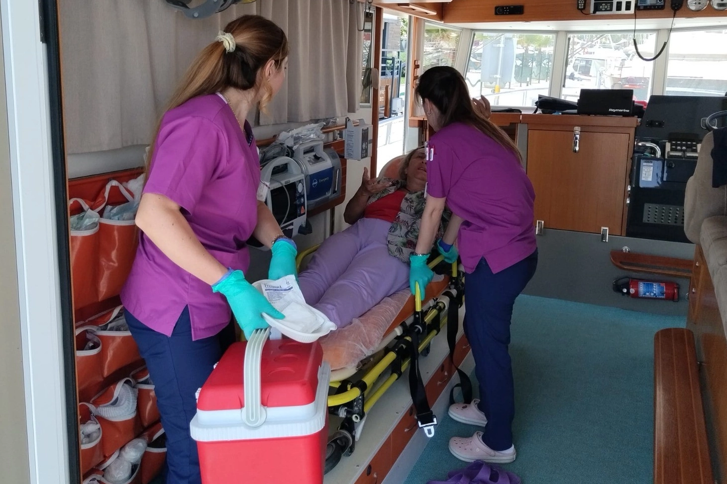 Olay, önceki gün öğle saatlerinde Yunanistan'ın Leros Adası yakınlarında meydana geldi. Ailesiyle birlikte teknede tatil yapan 59 yaşındaki Özlem Y., sert hava şartları nedeniyle tekne içinde dengesini kaybederek düştü. Düşme sonucu kadının baş parmağı koptu. İlk müdahalesi Leros Adası'ndaki hastanede yapılan yaralı, acil ameliyat edilmesi gerektiği için Bodrum'a sevk edildi. Sahil Güvenlik Komutanlığı koordinasyonunda yürütülen operasyon kapsamında Bodrum Deniz Kurtarma Derneği'ne ait "Yaşam" isimli deniz ambulansı, yaralıyı Leros Adası'ndan alarak Bodrum Milta Marina'ya getirdi.